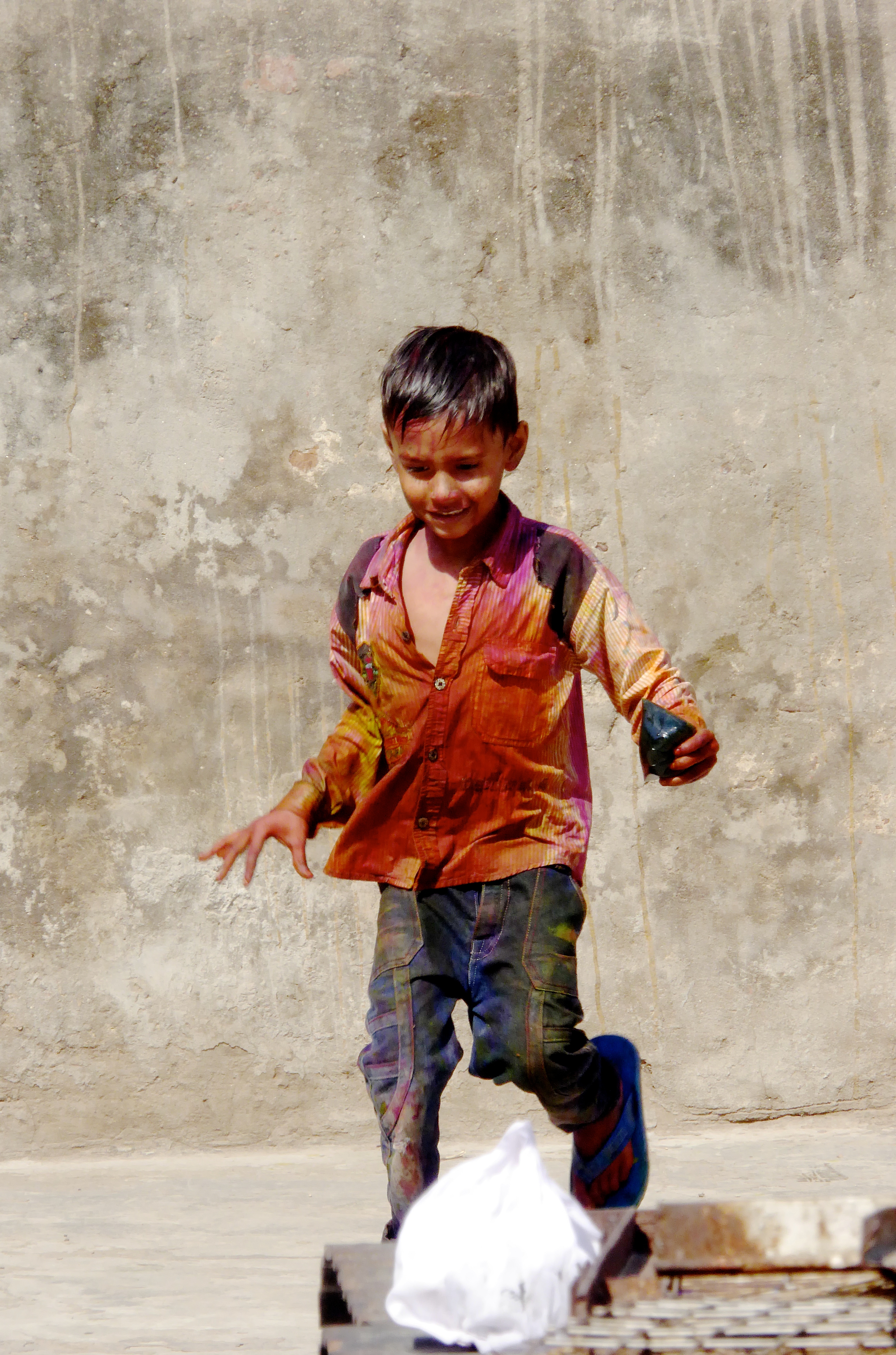Boy on roof top in Varanasi during Holi