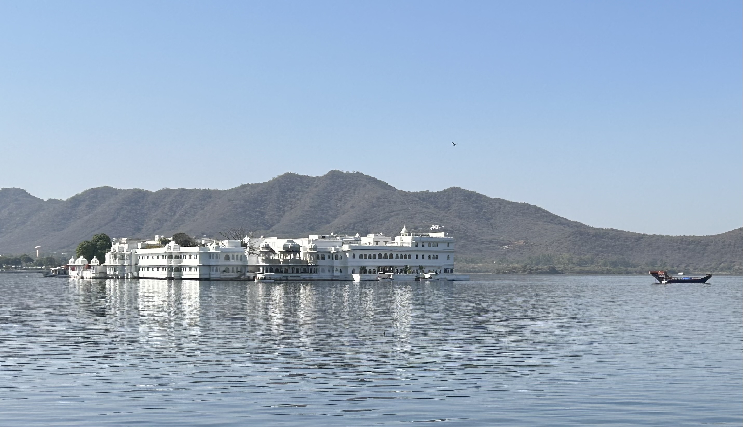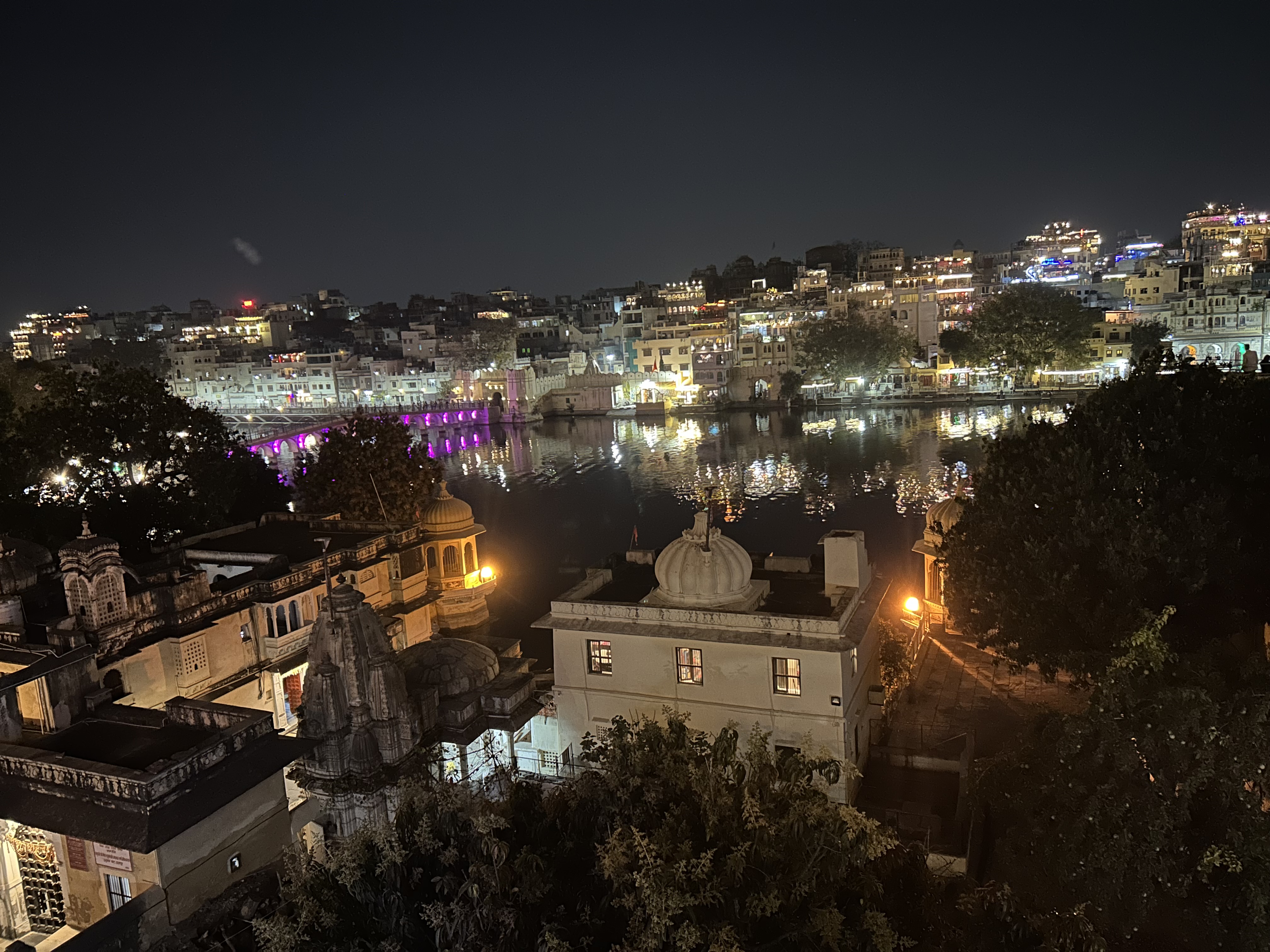 When the sun or the moon rises over the lake, it could be a scene from an Indian miniature (minus all the flashing colored lights that India loves).