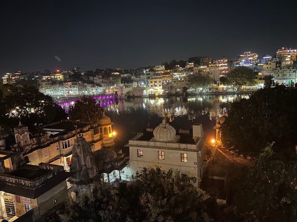 We first came to Udaipur 24 years ago and haven’t returned until now. On our first visit, when we only came to India for three weeks and were still working, we stayed in a Heritage haveli on the edge of the lake in the honeymoon suite for a mere $25. Today, we’re still paying $25 for a room that’s definitely one of our better ones in India, four large breezy windows with a lake view. But it’s nowhere near the caliber of the previous suite and located on the ‘other side’ of the lake.