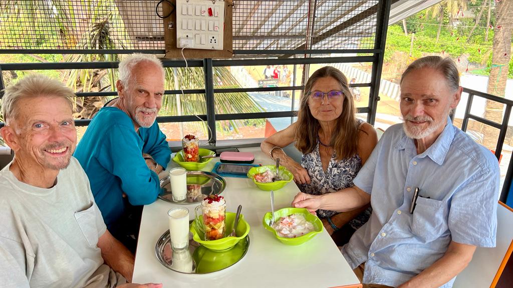 Marion and Juergen have arrived from Germany. They’ve  been in the country for two weeks, and have a nightmarish story of sickness. They had just arrived in Mysore when Juergen had what seemed to be a heart attack. They went to the hospital and he was kept for several days while all kinds of tests were done.  Fortunately there was no evidence of a heart attack, but no conclusive explanation.  And of course quite a large bill.  All too familiar to Gerard’s mysterious heart episode last summer.