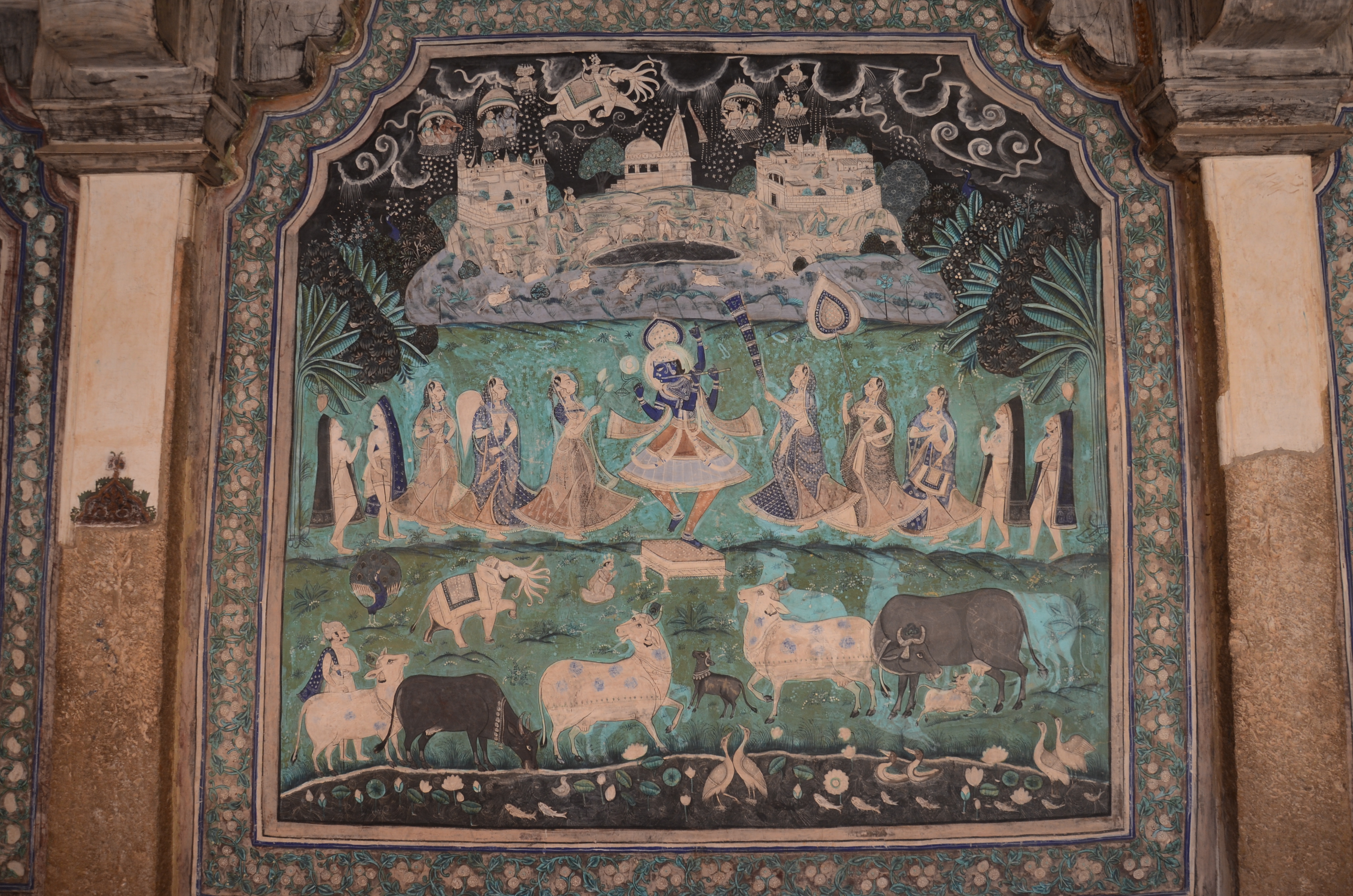 This time, we were underwhelmed by the palace, but the murals are still extraordinary, some of the best in India.