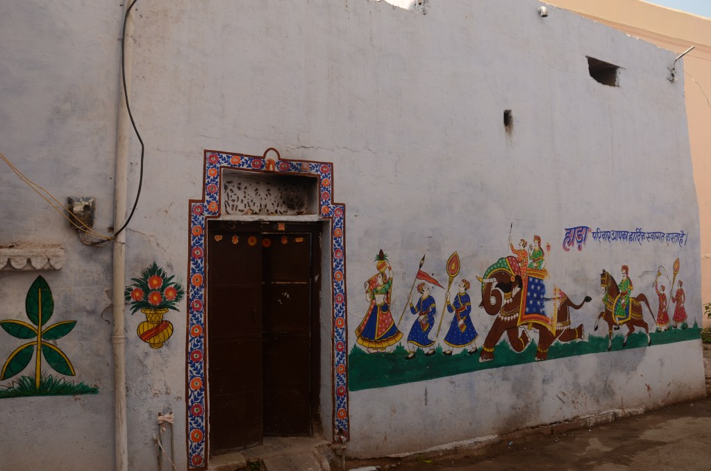 Another walk took through the lanes to the edge of town. We passed houses with decorated walls similar to those in Varanasi and other parts of India but these designs are peculiar to Rajasthan.