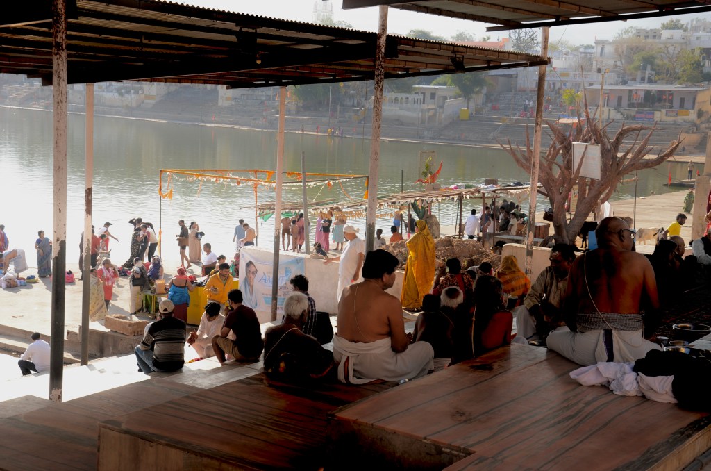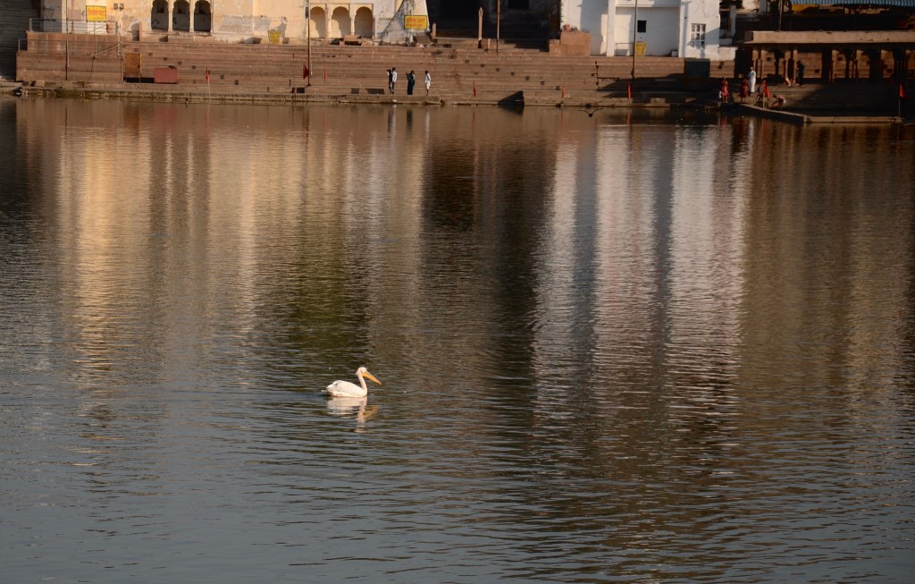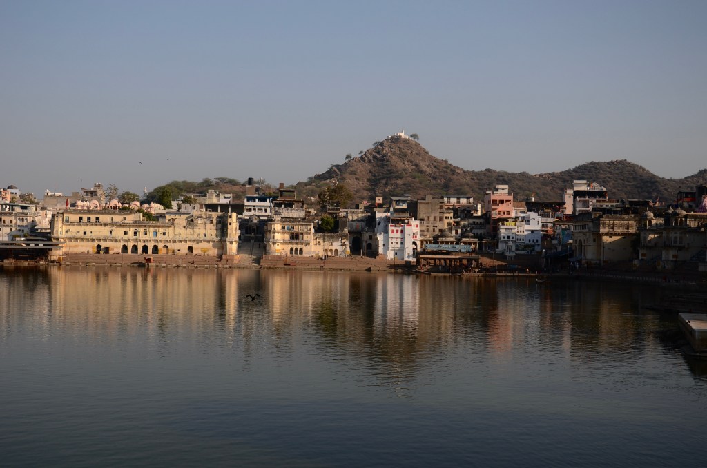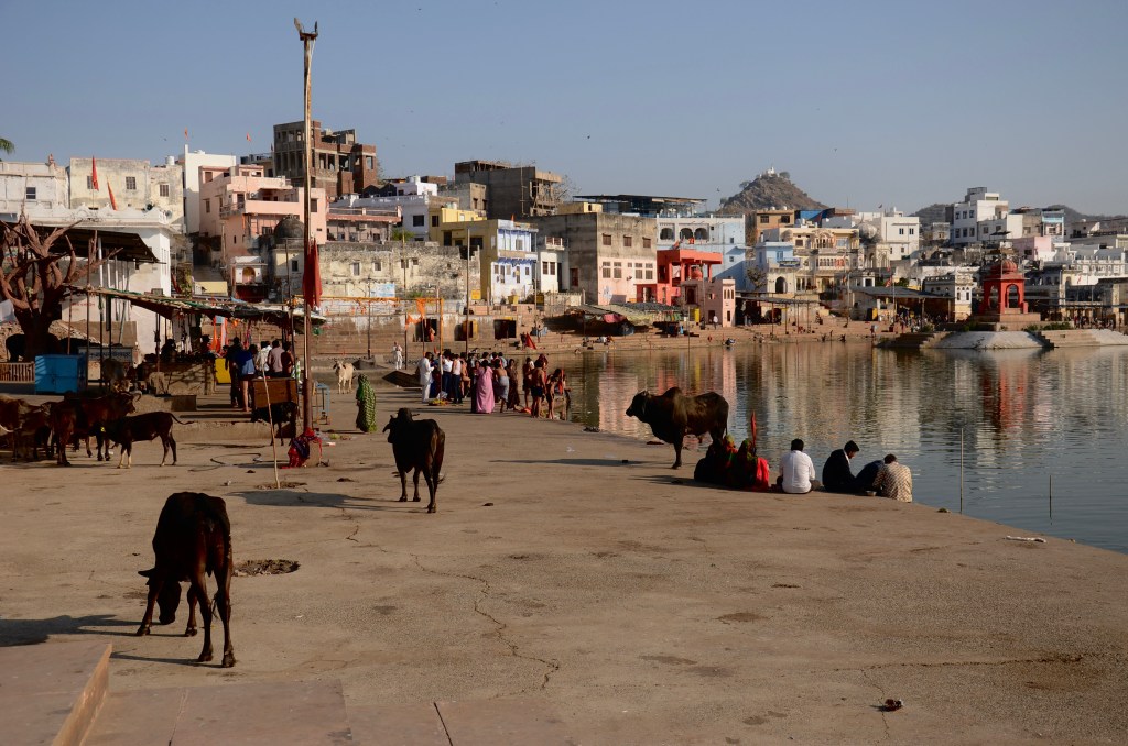 Pushkar, a temple town, is likened to a mini Varanasi with its bathing areas for pilgrims.