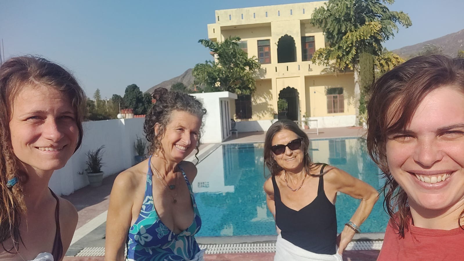 With the weather growing hotter by the day, Marina and I decided to visit a hotel with a swimming pool on the edge of town. Pryanka and her friend Nadine joined us. How refreshing to immerse ourselves into the cool clear water. Afterward, we sat beside the pool eating masala potato chips and paneer pakora, playing gin rummy! A perfect ending to our stay in Pushkar.