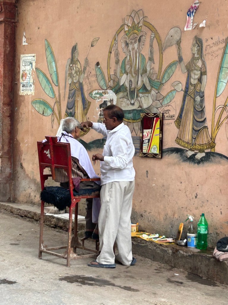 We spent the remainder of our three months in Rajasthan, returning after several years to three towns. I enjoyed the longer stays and less travel. Comfortable and familiar; less exciting but also less taxing. The incessant urban noise was hard to take; motorbikes, horn blowing, new construction, street repairs. While jarring for even those with adequate hearing, for me it was bewildering. With my hearing loss, I was grateful to be protected from the barking dogs and early morning chanting, that Gerard had to deal with. But it was hard not to feel isolated when excluded from conversations in restaurants. Then I managed to let go. I remembered my friend in Boston telling me if you can’t hear, you can people watch. When not an active participant in the conversation I became fascinated by the nuances, each speaker’s gestures and expressions, the visual interplay between people. Never being being a visual person, hearing difficulties have helped open me to other sense perceptions.