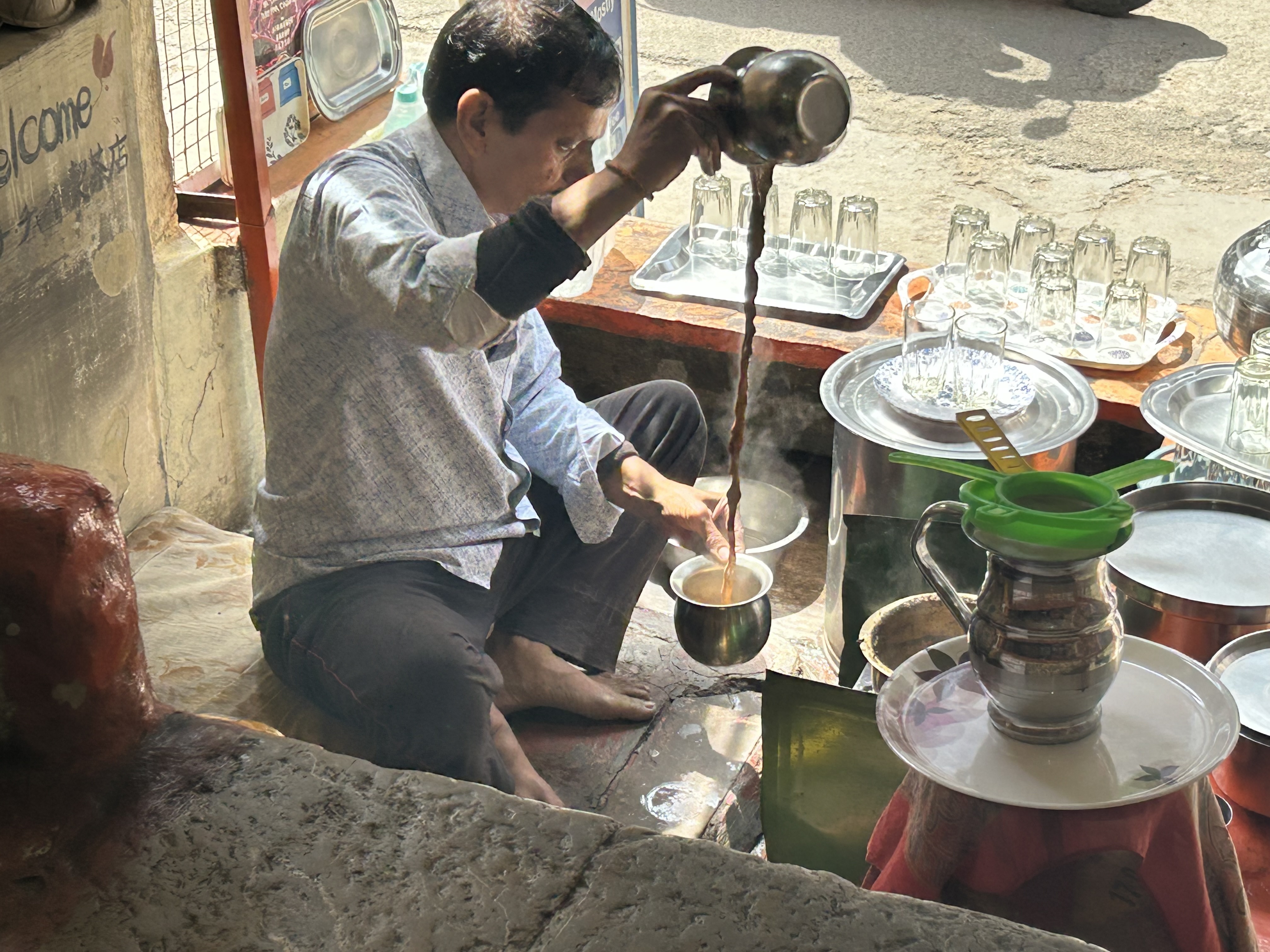 We stumbled on the best chai stall in Bundi. The chai wallah set up an immaculately clean spot beside the street, grinding fresh ginger and spices with a smooth flat stone, to make the most amazing masala tea.