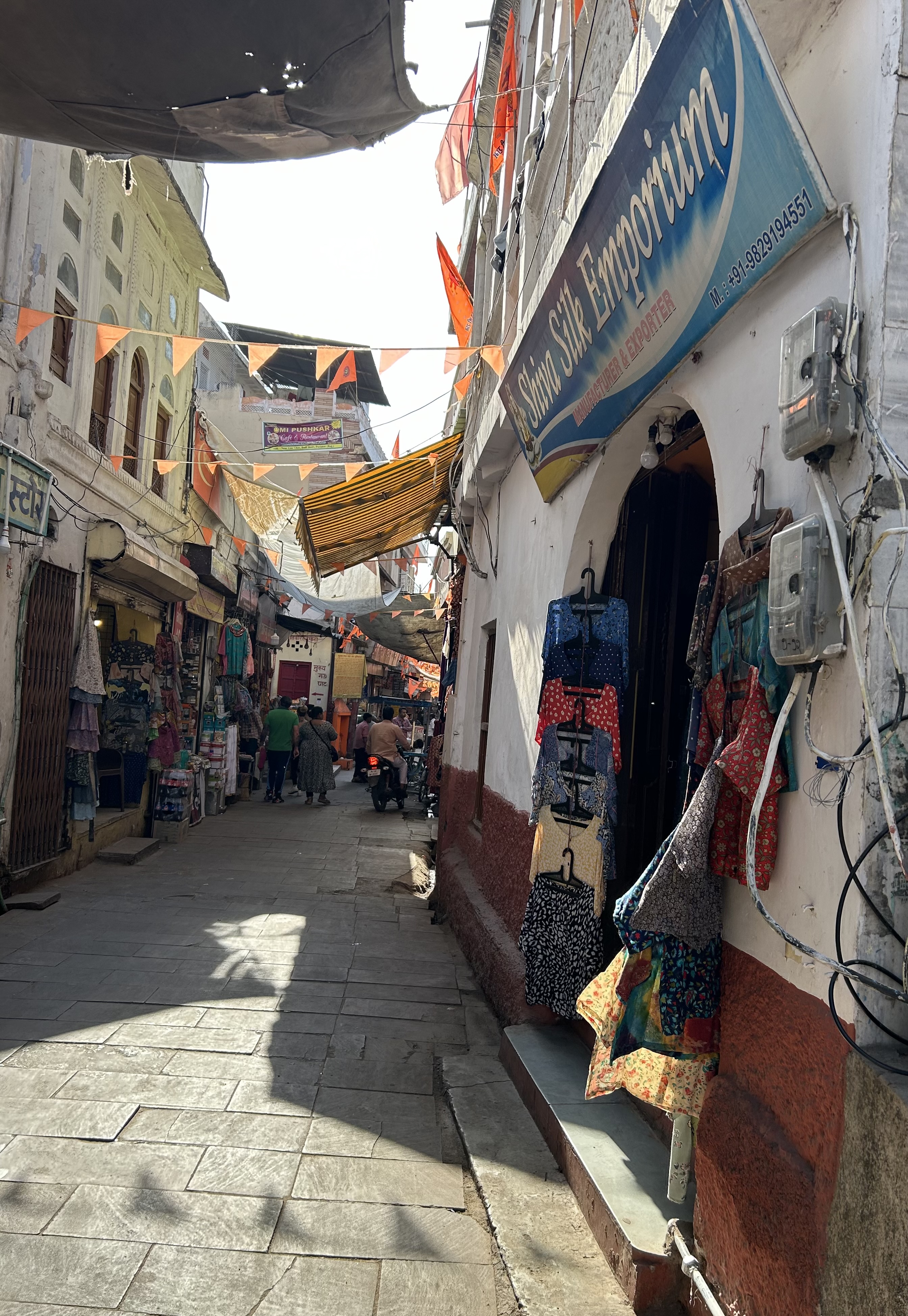 Decades ago, Pushkar attracted hippie backpackers, but is now a commercial hub for the textile and silver industries. The change in merchandising from when we were last here took us by surprise.  Indians and foreigners are now more sophisticated in their purchases and many buy wholesale to export to other markets in India and abroad. Retail prices have risen and the style of the clothing is less interesting, taking on a more mass production, western style look.
