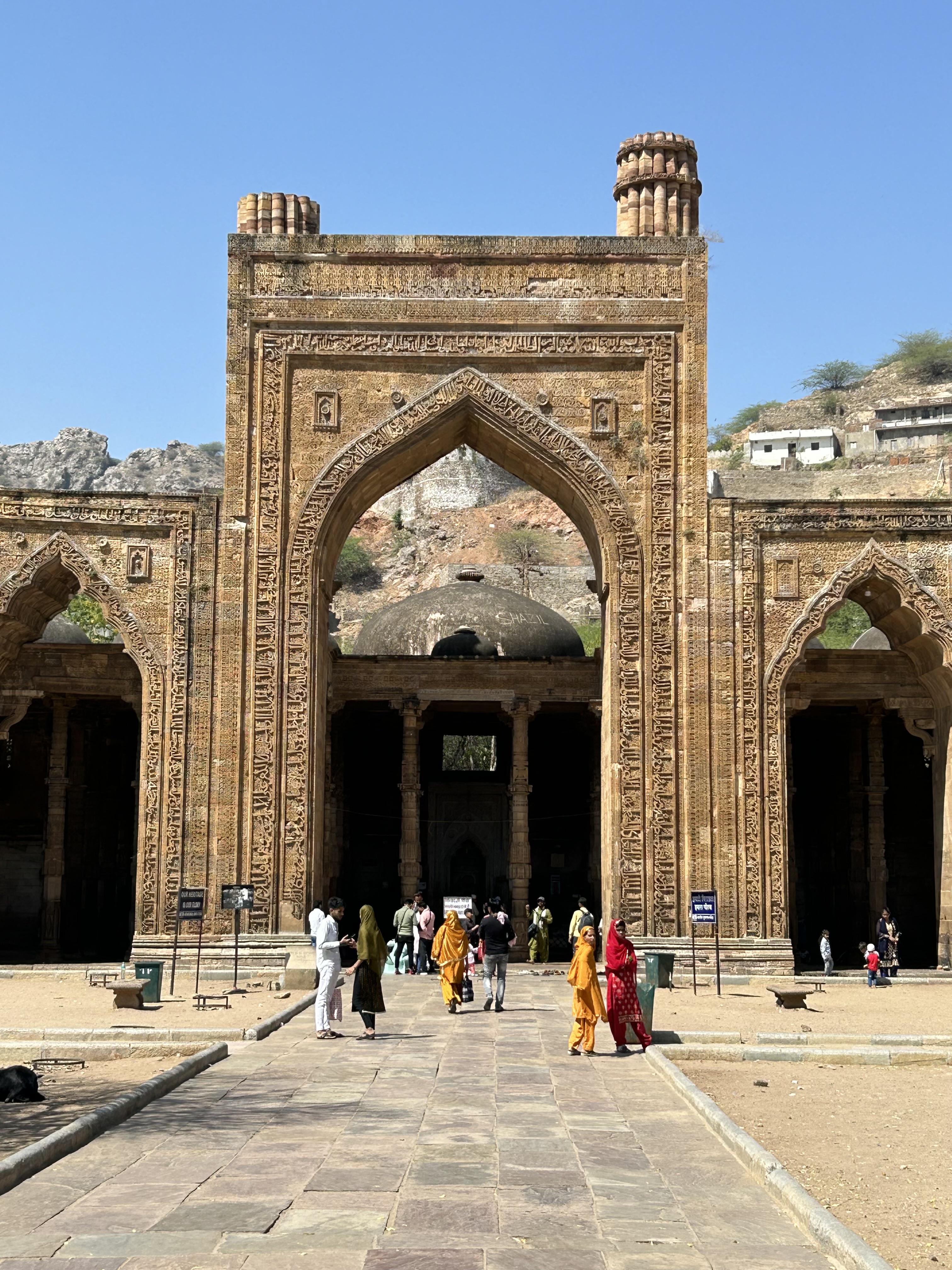 As our time in Pushkar was drawing to a close, we took up Marina on her promise to show us Ajmer. Only a half an hour away, the main attraction is a Moslem Dargah (a shrine built over the grave of a revered religious figure, often a Sufi saint or dervish). Rajiv’s daughter, Pryanka and her friend, Nadine joined us. Before the Dargah, we visited the ruins of Adhai Din Ka Jhonpra, the oldest mosque in India, built in 1190.