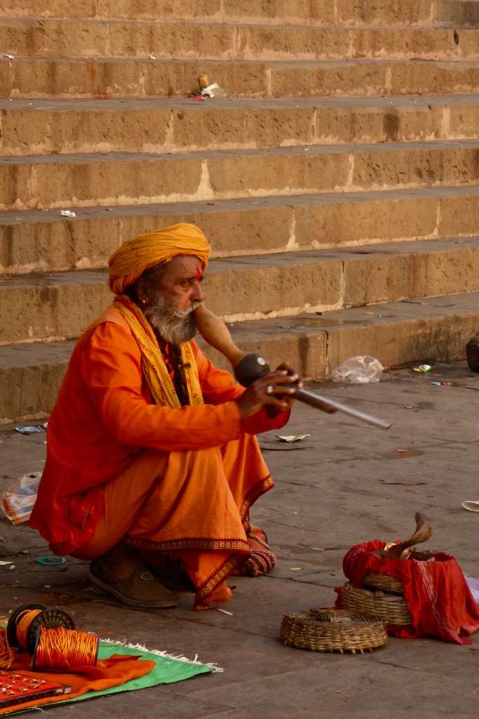 My favorite spot was beside a brook just outside of town. Sitting on a rock, next to the brook, we noticed a Sadhu getting ready for the day.