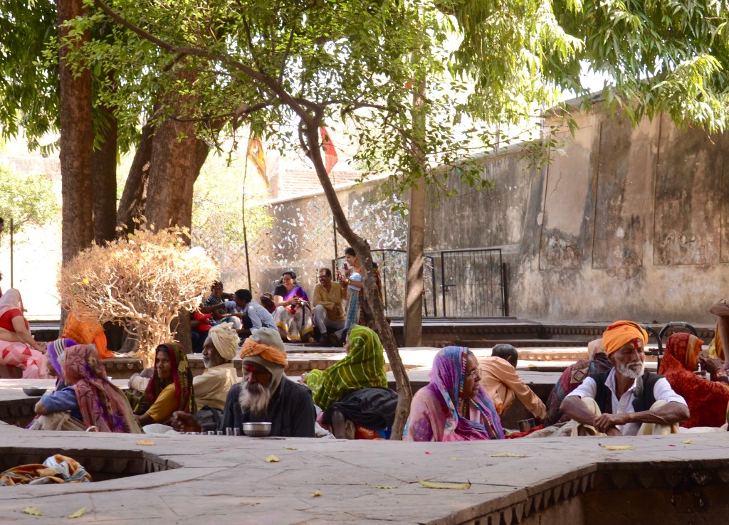 It took little imagination to visualize the very same activity going on hundreds of years ago. This is what has inspired us to return for a fifth time. There’s other lanes and courtyards here that have suffered little change in the last two hundred years. Gerard commented that originally he thought all of India would look like this town, scattered with ruins from the days of grandeur. Definitely not the case! Walking through the temple complex at lunchtime, we watched a couple feeding the poor with food, they’d obviously prepared at home.