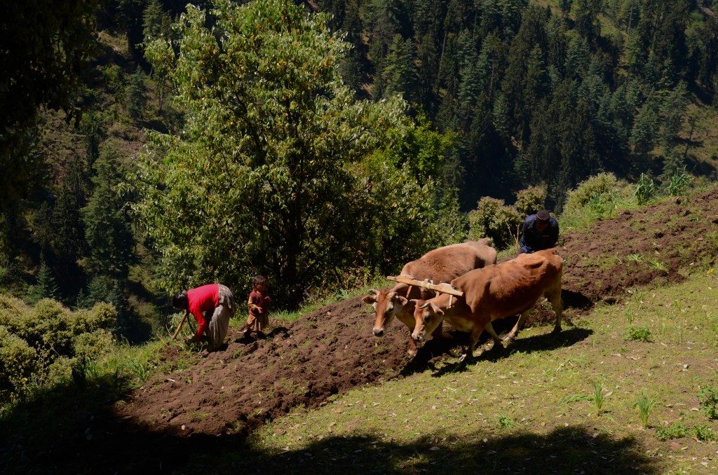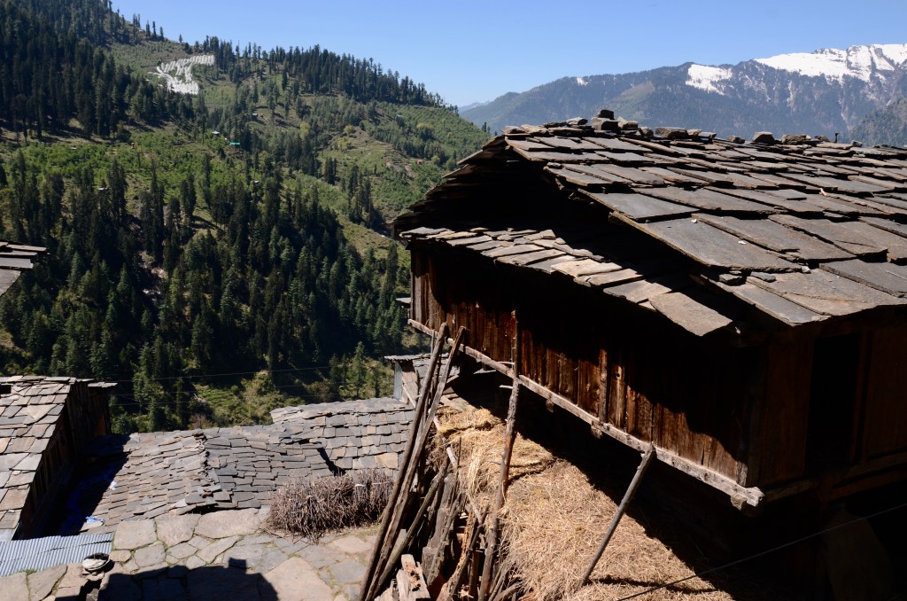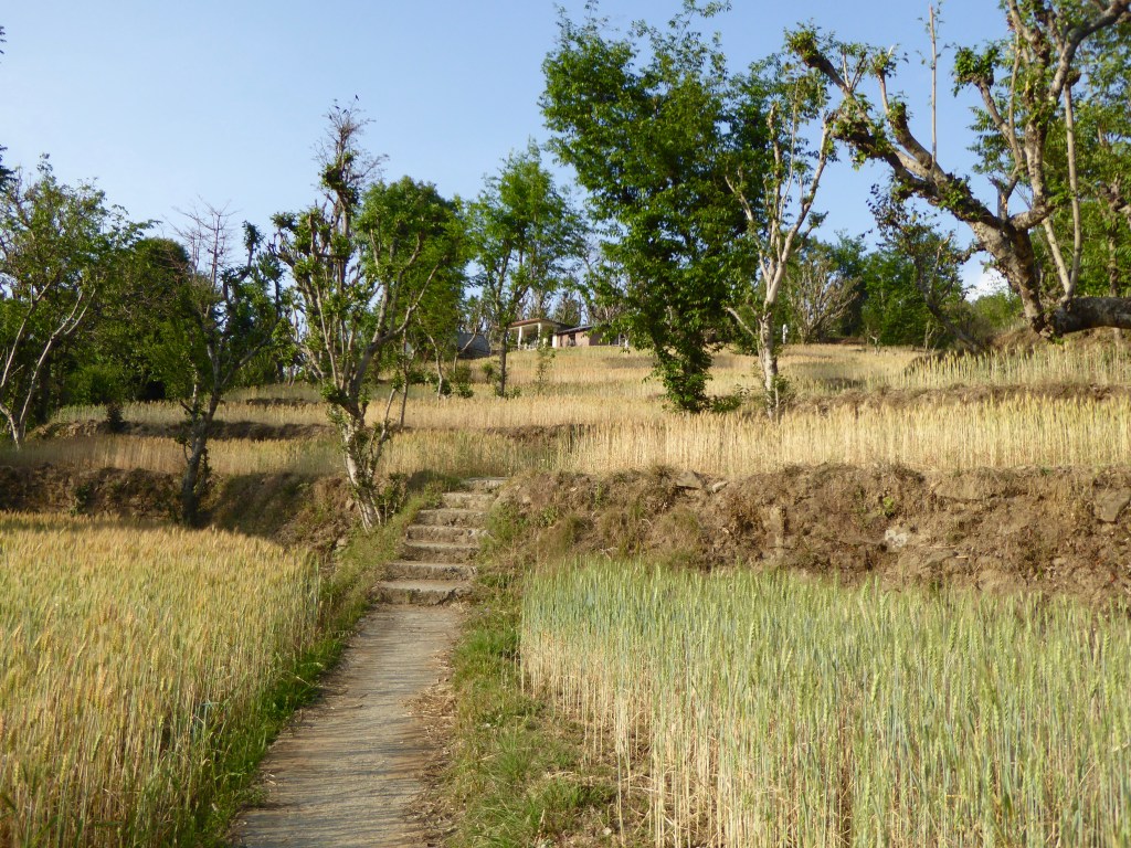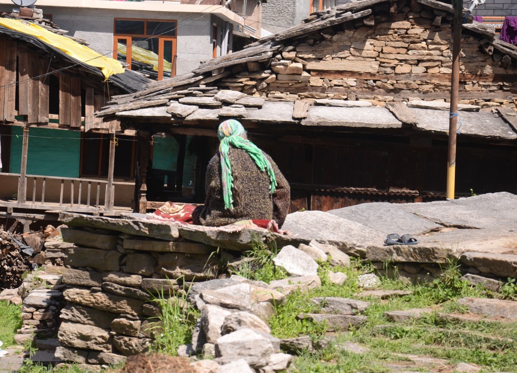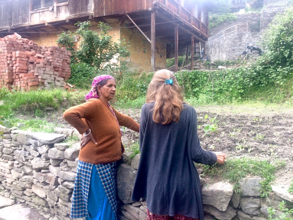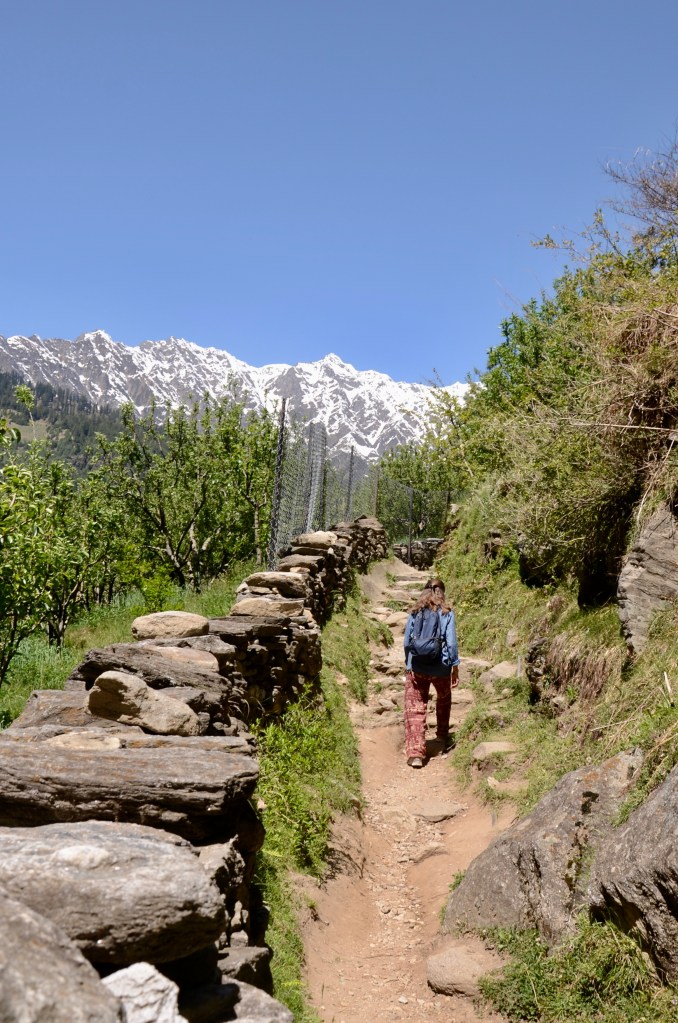 There are plenty of walks in the countryside surrounding Vashisht. On a picture perfect sunny day, we retraced a route we’d taken with our American friend, Peter, two years ago. We crossed over the Beas on a rickety wooden bridge and walked up into a small hamlet of old houses where life hasn’t changed.