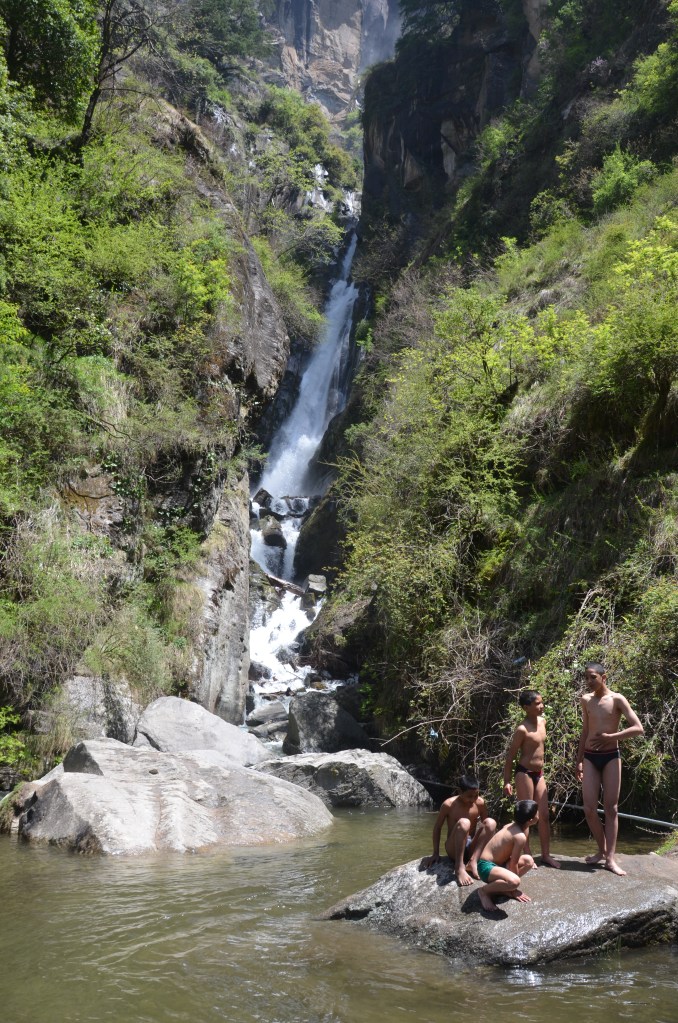 The waterfall is another ten minute climb. Local boys splashed in the cold water and, more fascinating, little birds actually swam and then dove under.