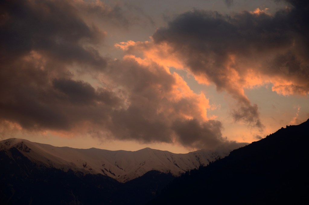 The subject of staying in the present is a repeated topic of conversation for us. Here, amongst the dramatic mountains, it’s a little easier. Their power has a calming effect on the busy mind. It doesn’t seem to matter if they’re shrouded in clouds or crystal clear against the blue sky. We are grateful to be here.