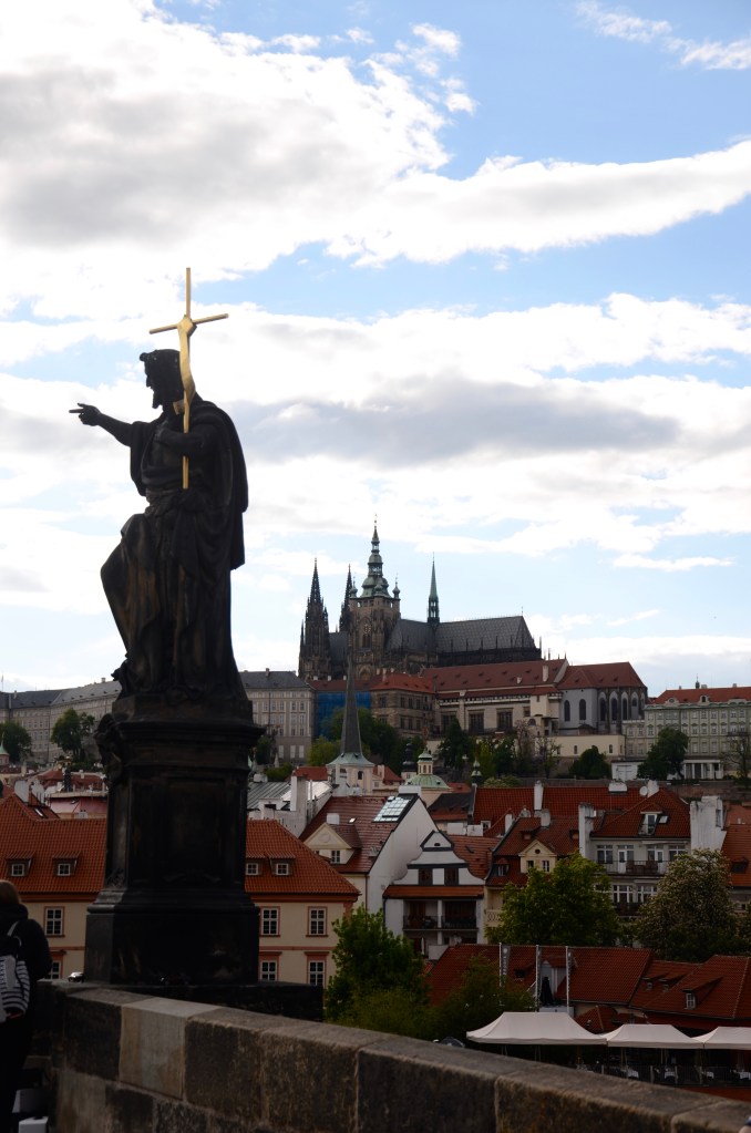 Standing shoulder to shoulder with Russians, Chinese etc. in the Square to see the famous old Clock chime, and then weaving our way through the crowds over the Charles Bridge with its many statues. A plaque commemorating a martyred priest. Questioned by the king on what the queen had confessed, he refused. His torture led to being thrown off the bridge.