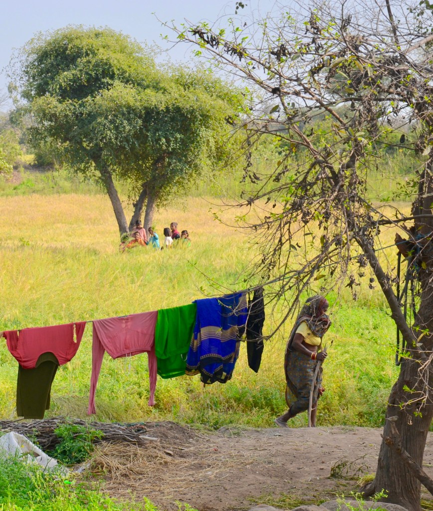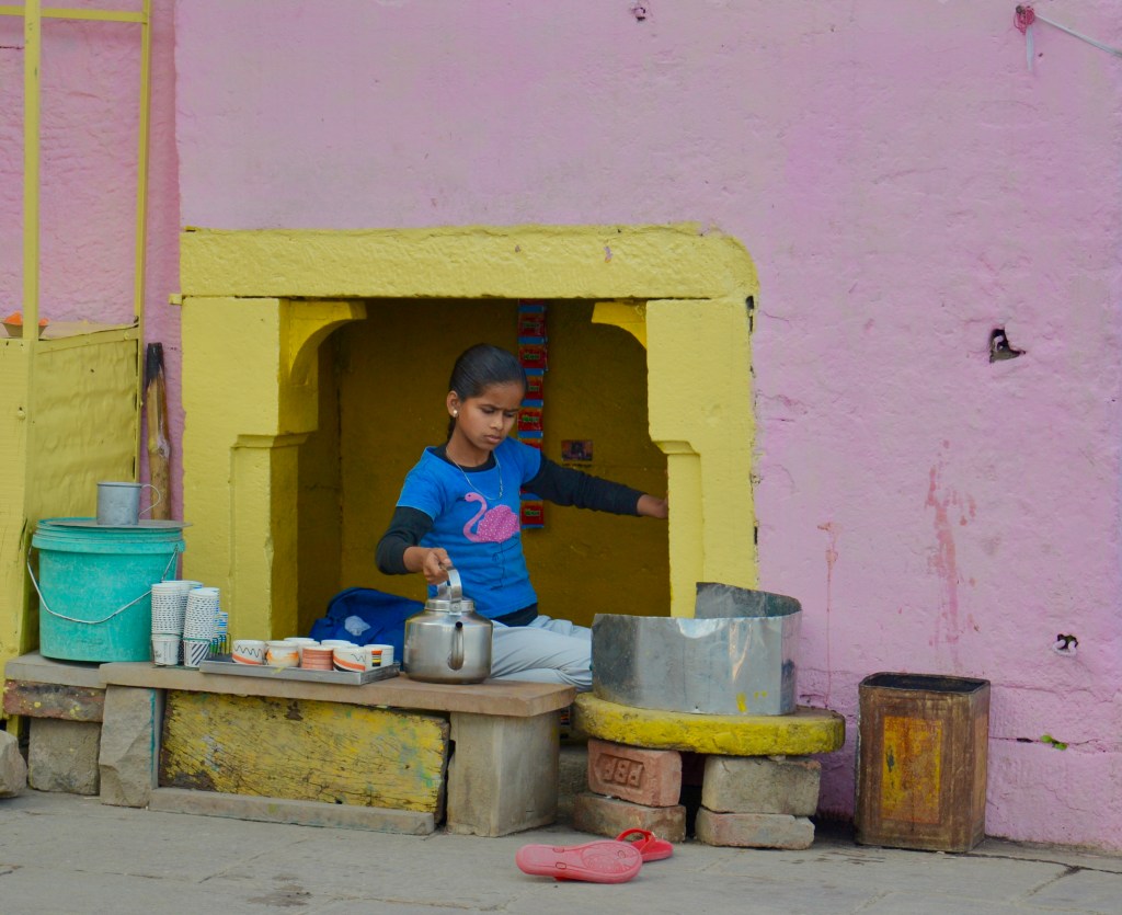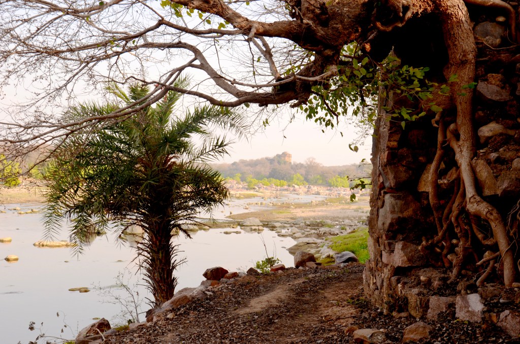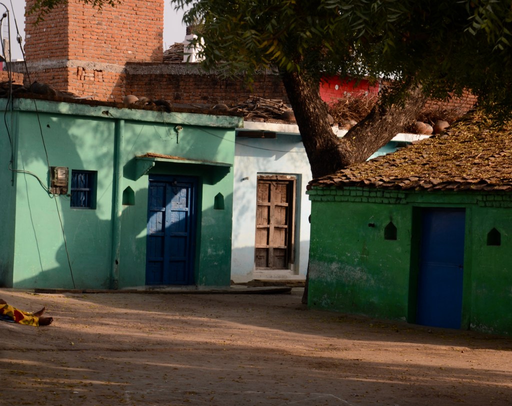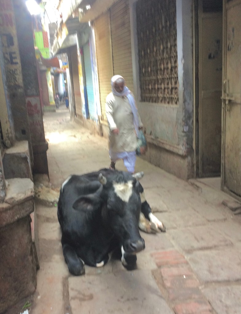 Before we booked our railway tickets to Delhi, we made the time to visit my favorite place on the edge of town – a brook bordered by wheat fields and distant monuments. The only sounds were the trickle of water and birdsong and a cow munching grass. A moment of peace.