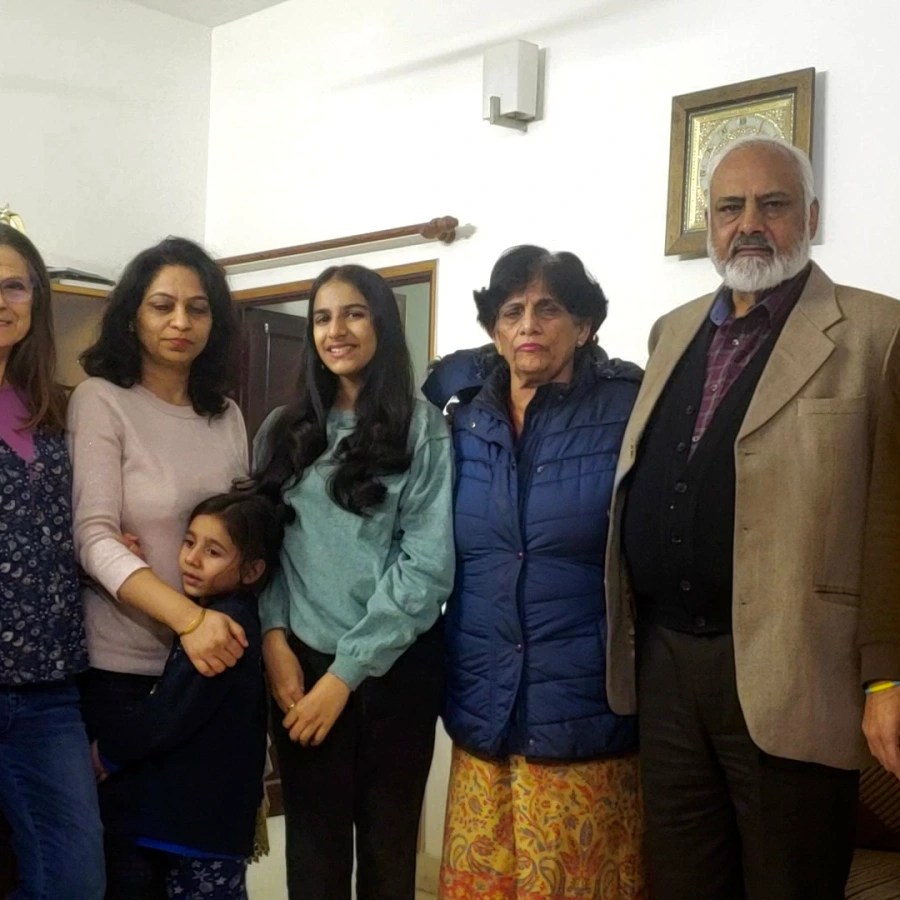 Shruti, Tanya and Simrita and Swarn auntie and Ravi uncle in 2022.