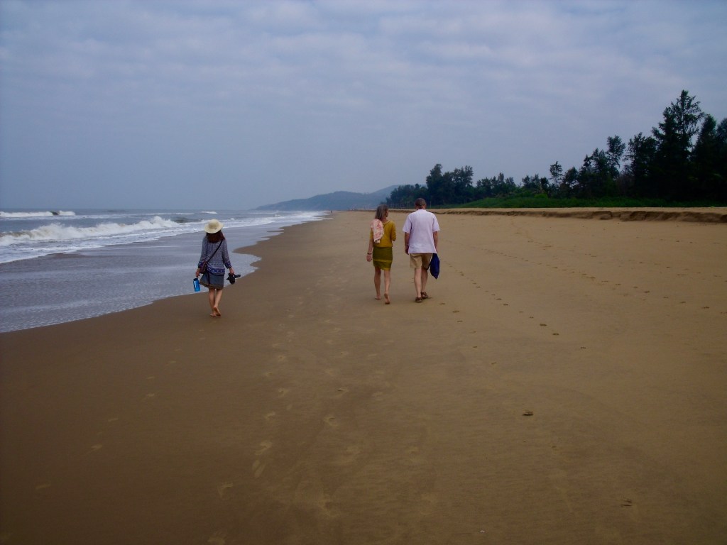 The long walk was not finished; we still had to get to the neighboring town through more jungle and rice paddies to catch the next bus to Gorkana. On the ride back, Marion asked, if we had known what the route had in store, would we have agreed to come. Gerard admitted he wouldn’t have minded missing the climb over the rocks to Paradise Beach, but loved Half Moon Beach.