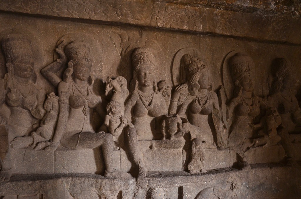 Over 600 years, between the 5th and 11th Cs AD, both Hindus and Buddhists carved a total of 34 caves out of the rock face. Sitting close to one another, they illustrate the religious harmony that existed in ancient India. One wishes that was still true today.