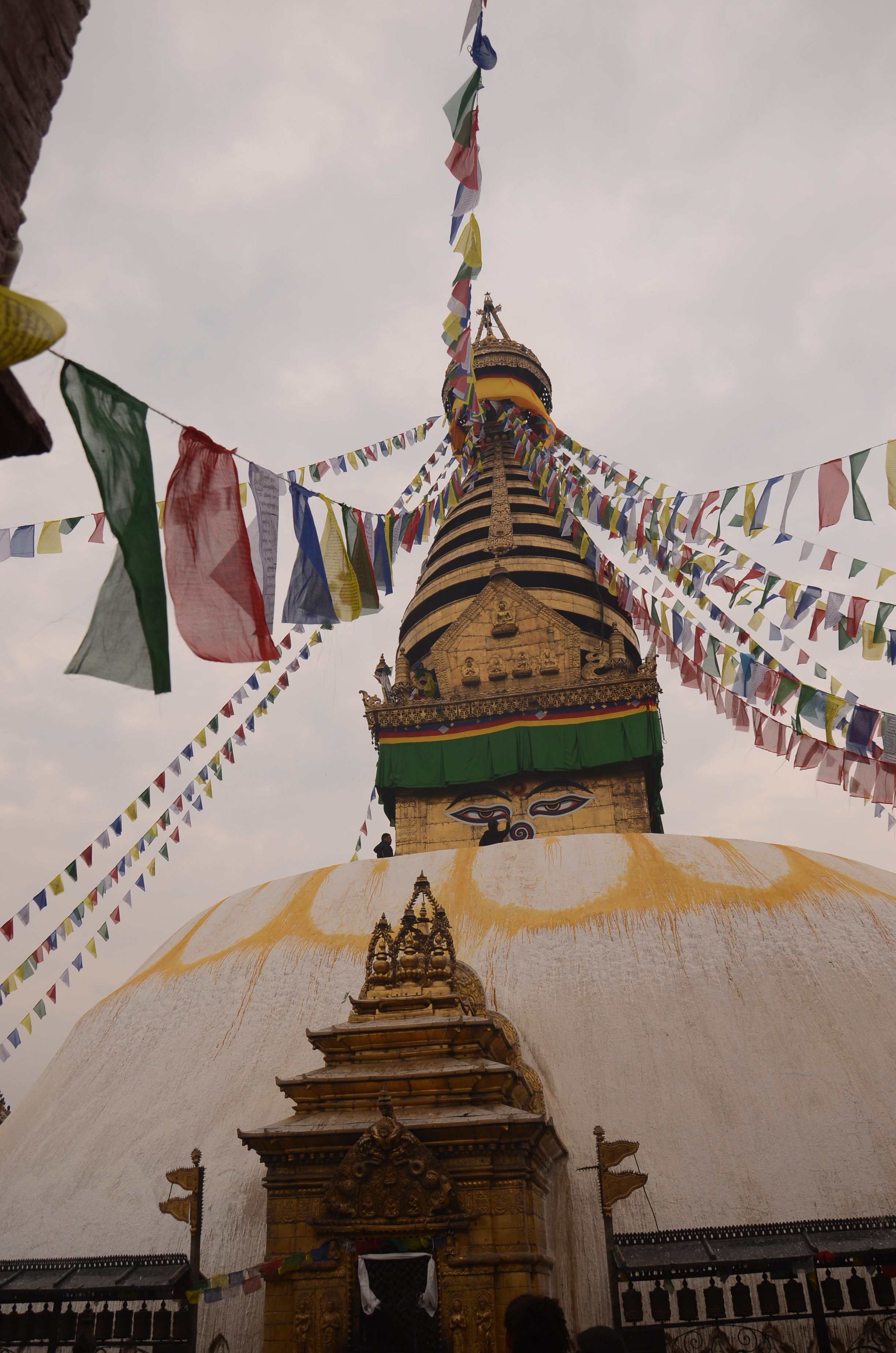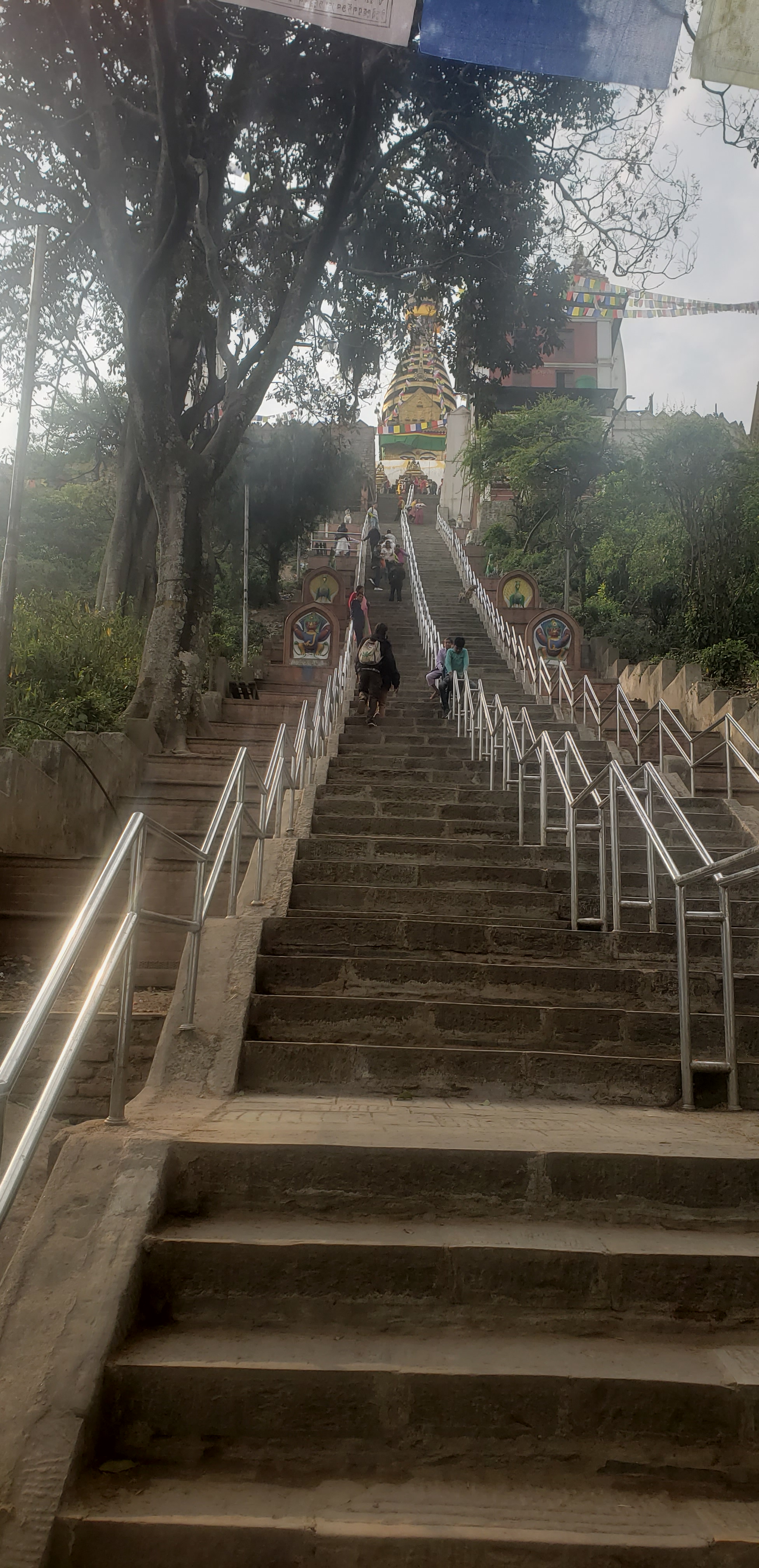 Next day we waited for the drizzle to stop, then climbed up the 365 steps to the Swayambhunath or Monkey Temple.