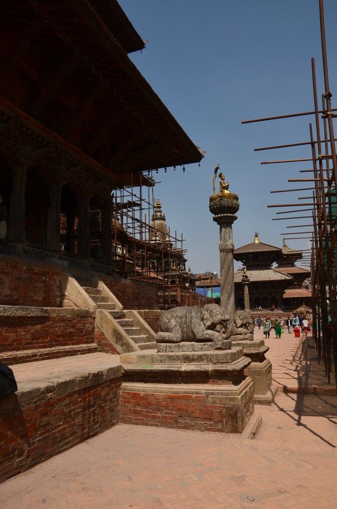 Unfortunately the nearby Patan Durbar wasn’t as restored as Kathmandu because either it suffered more damage or has taken longer to recover. It was hard to see the deterioration of what had impressed us so much before—some of the finest Newari temples and palaces in Nepal.