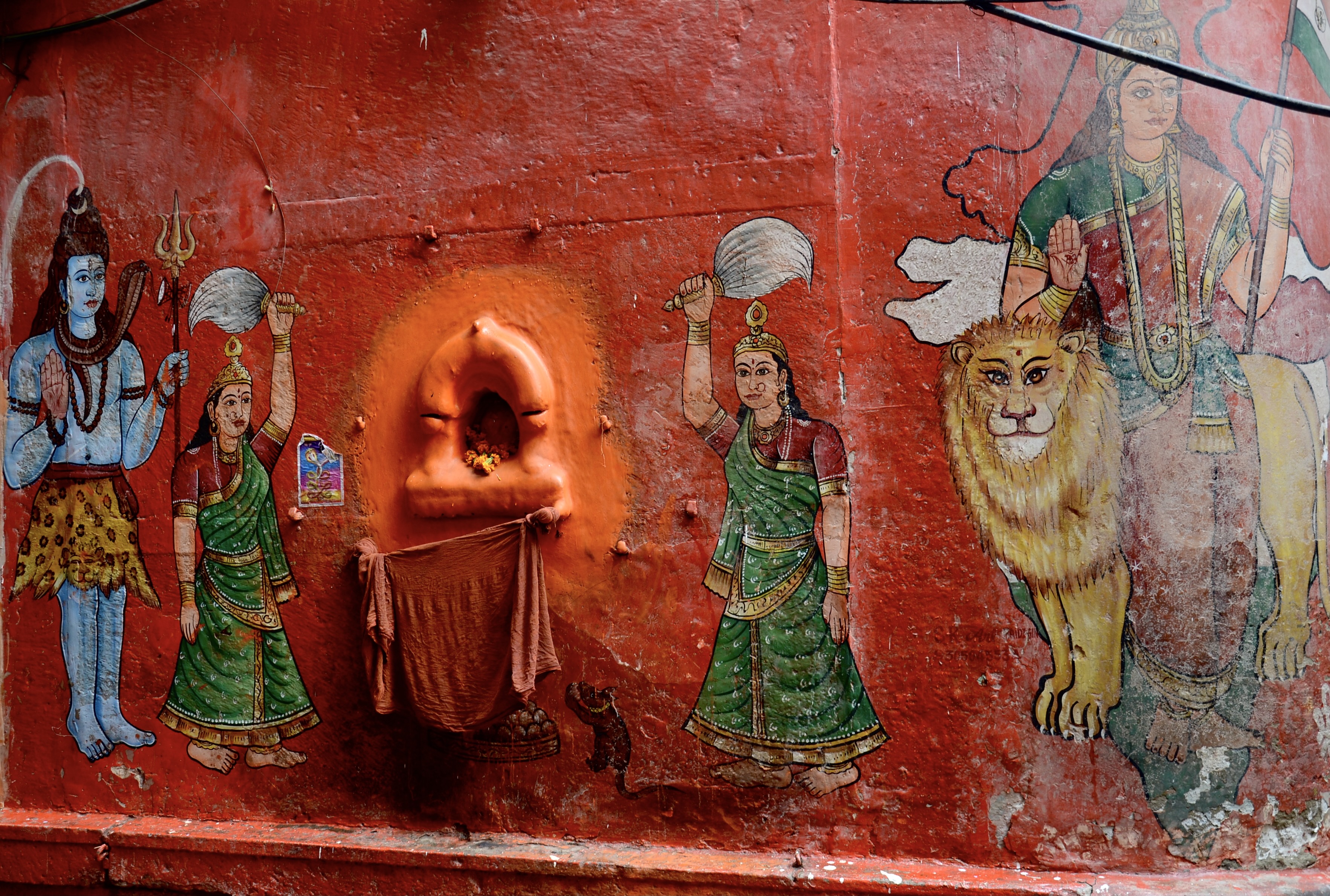 Happy at leaving Varanasi before Holi (not our favorite festival), only to find the Nepalis also celebrating. Youth and children roamed the streets throwing color until evening when things calmed down. We should’t have been surprised since Hinduism and Buddhism are practiced side by side in Nepal. Buddhist statues sit alongside Hindu deities at all the monuments.