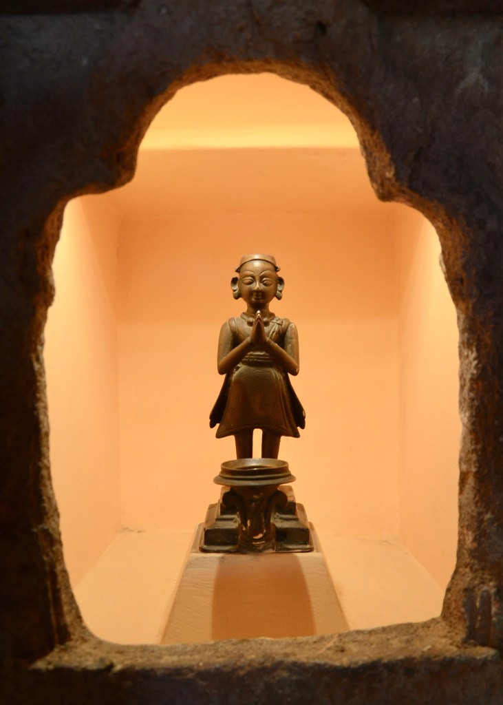 Our next stop had less impact except for its surroundings. The Soneri Mahal sits on the outskirts of the city. The ‘palace’ was decorated in gold giving its present name; Soneri meaning cloth of gold. Today, it is a cream-painted nondescript looking building with a mediocre museum of pottery, sculptures and kitchen utensils. But sitting in open countryside, against a backdrop of hills it was a pleasant place for a short visit. Away from the hubbub, we immediately felt refreshed by the tranquility.